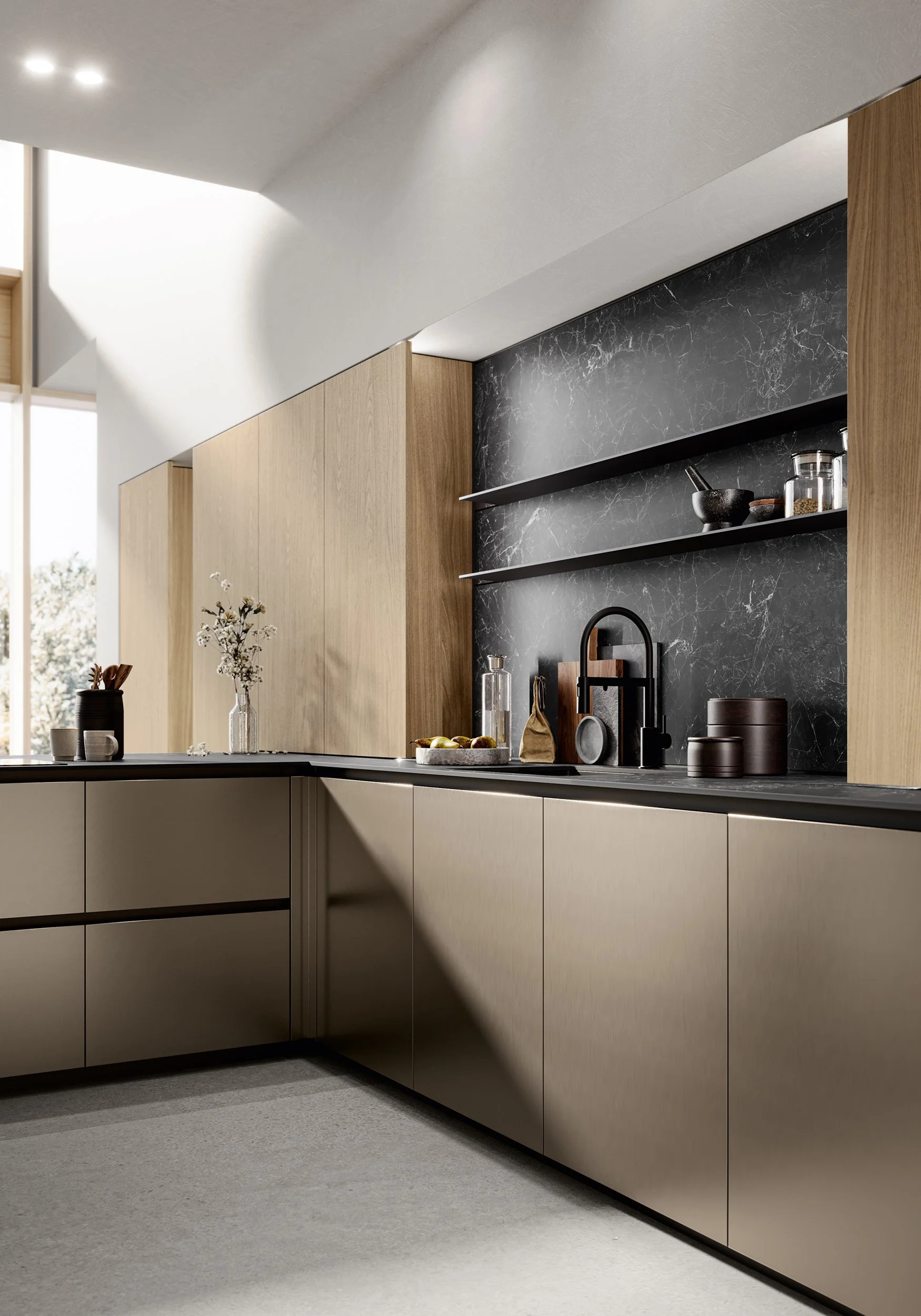 The Kalì slab door differs according to the kind of opening system used: there are many different handles available which are integrated in to the door or recessed ones (like Brera); otherwise there is a grip profile, a 30° handle or an “L”-shaped opening. A way to express your personality with a broad array of finishes and a high degree of customisation.