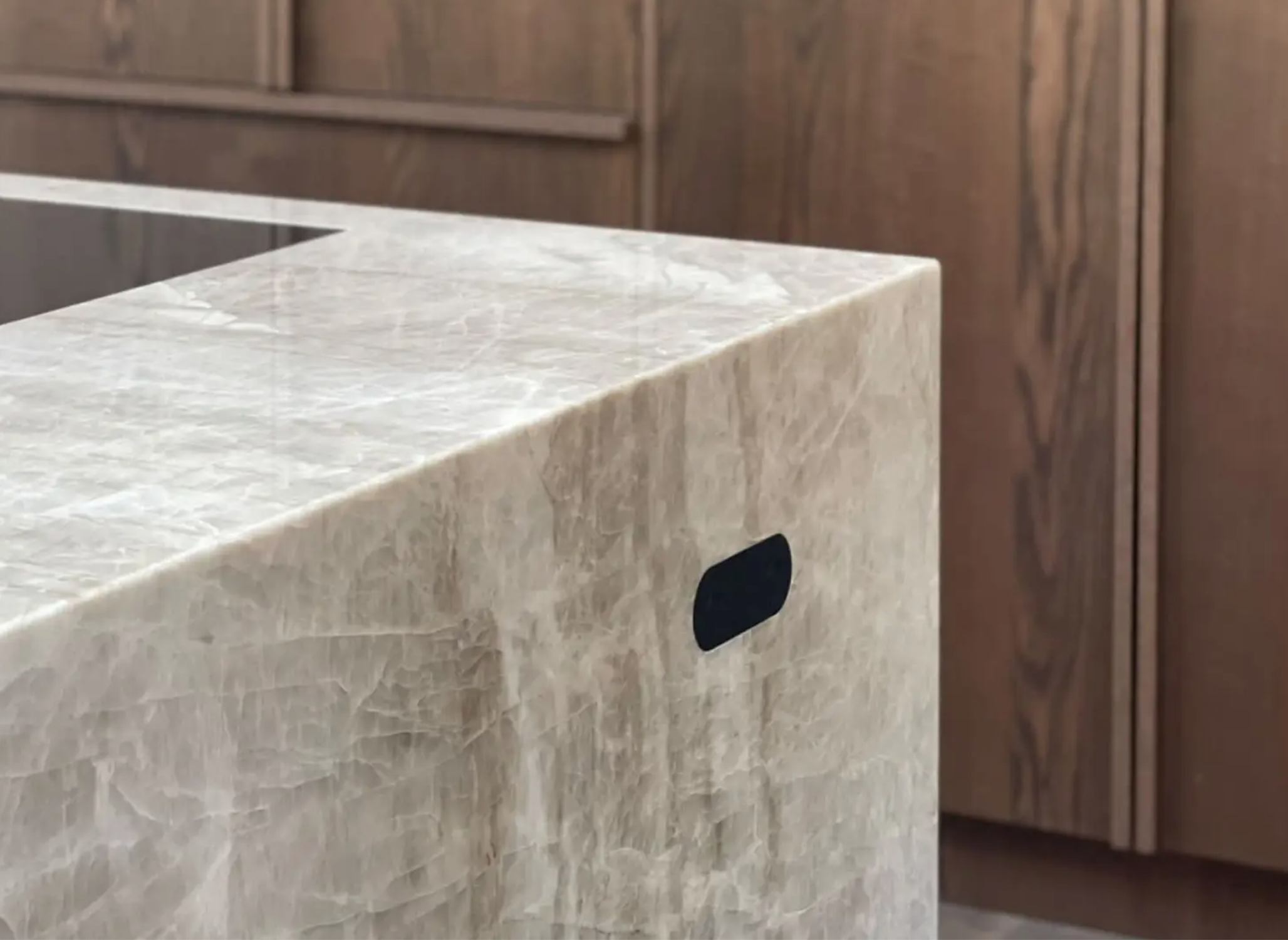 ZETR Brushed power point at our South Perth Project integrated in to Dekton splashback in Stonika Arga.